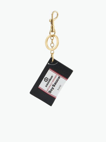 Elevate your style with the Anya Hindmarch Kikkoman charm—a playful and stylish addition to your favorite bag. Designed to mimic a sachet of our beloved sauce, this charm is crafted from sleek black capra leather, featuring the iconic logo and a tear here symbol. The golden clip allows you to attach it effortlessly to your tote.
